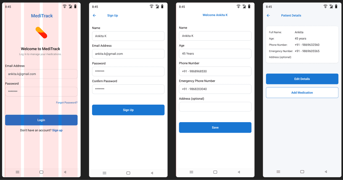 MediTrack is a medication reminder and tracking mobile application designed for elderly users and people with chronic conditions who need to take medicines regularly without fail.