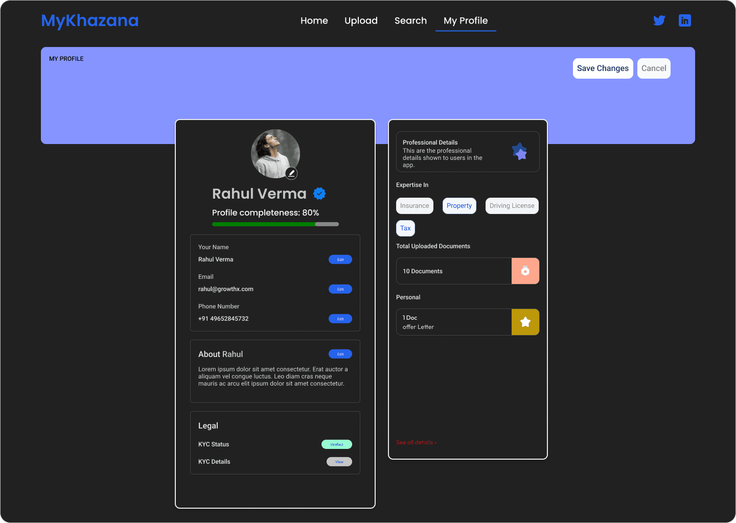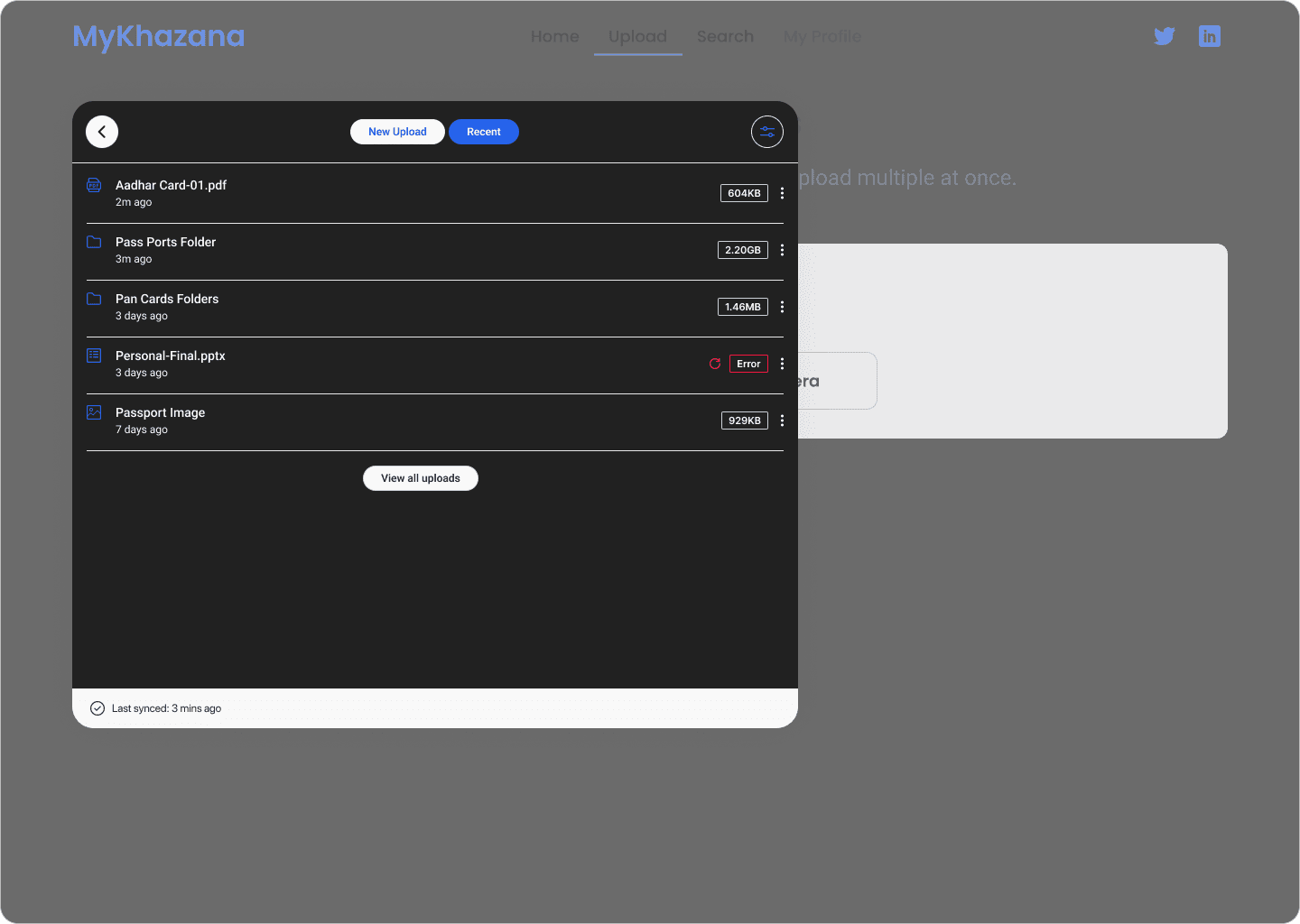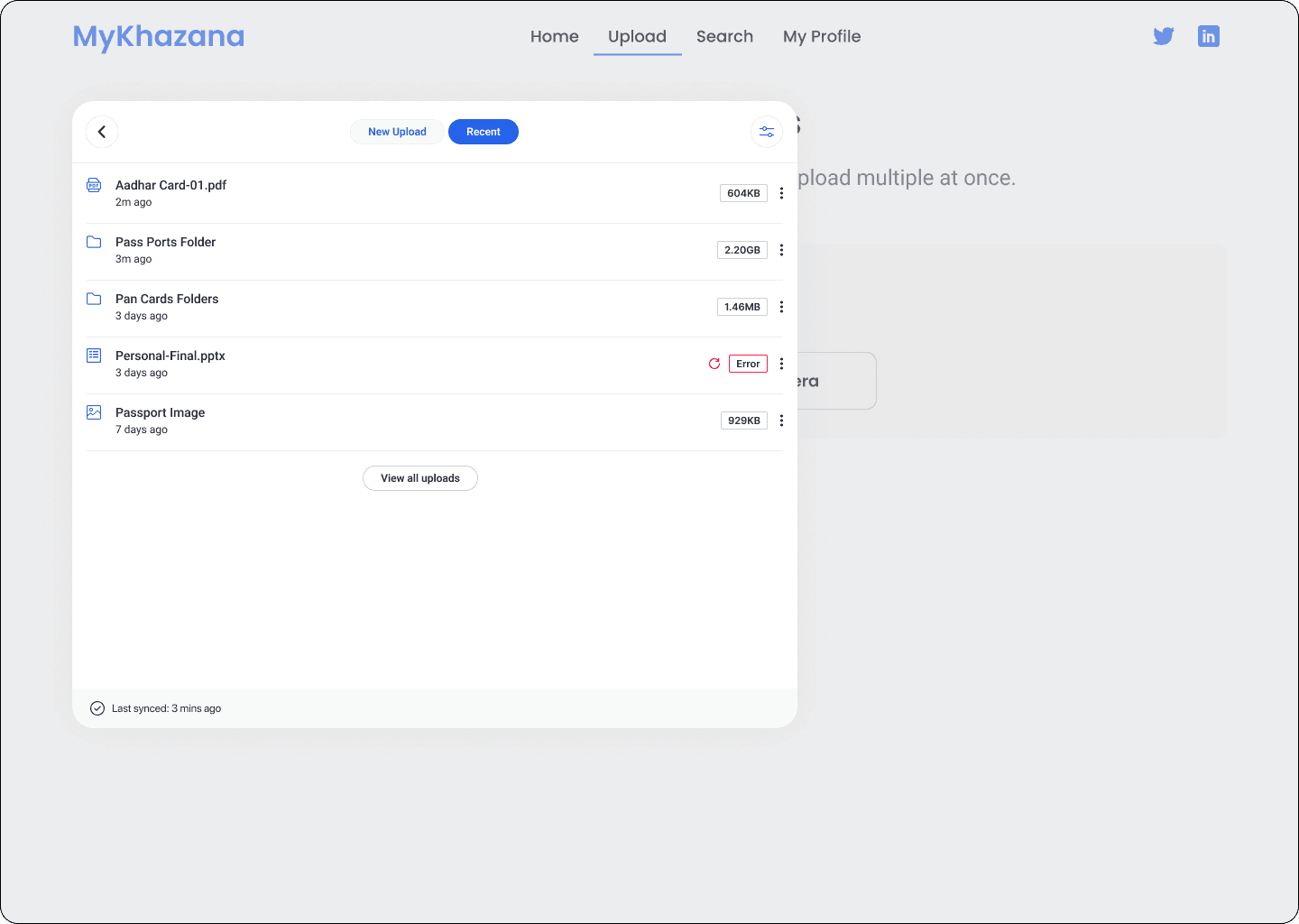 The project focused on designing a document upload and management flow for an enterprise SaaS platform. The goal was to simplify uploading, reviewing, and retrieving documents while providing clear error handling, skeleton loading states, and responsive feedback.
